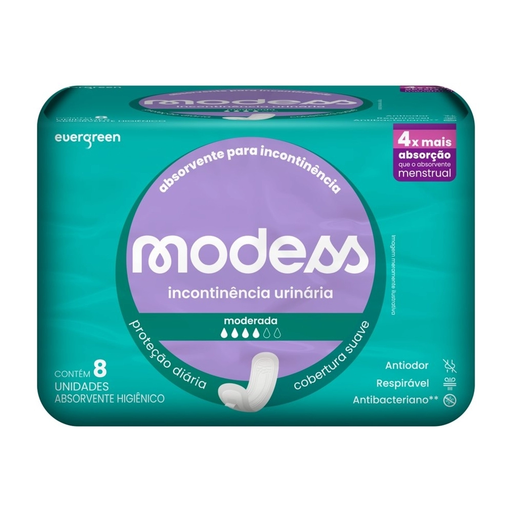 HIGIENE E PROTEÇÃO>ABSORVENTES>ABSORVENTE MODESS INCONTINÊNCIA MODERADA C/8