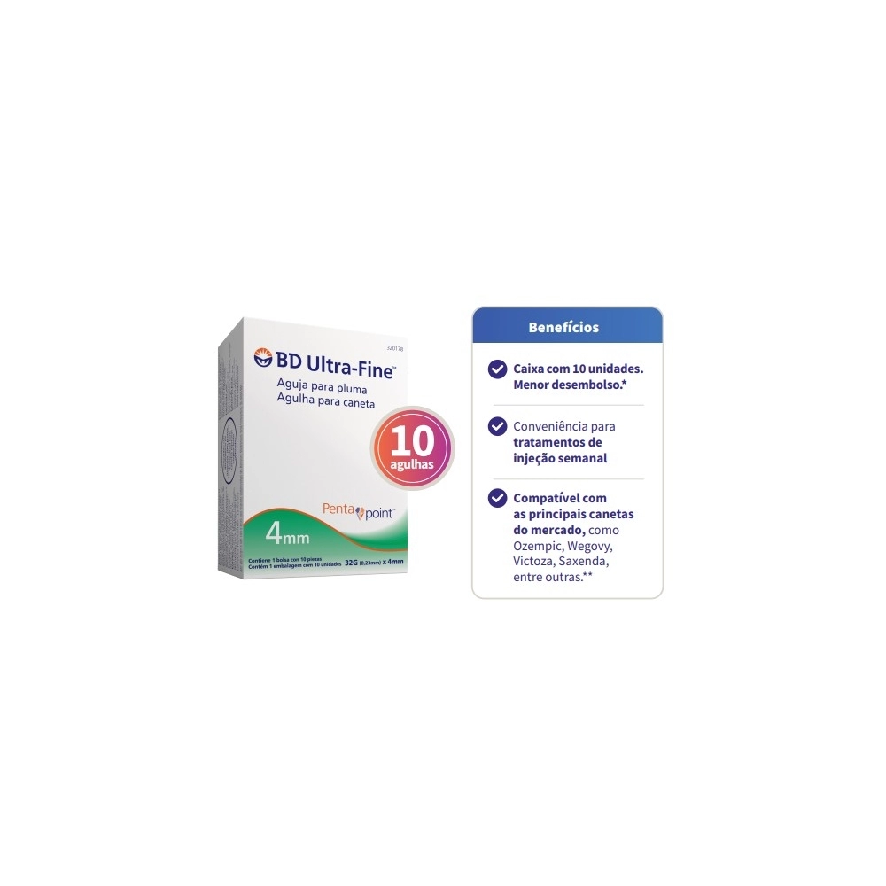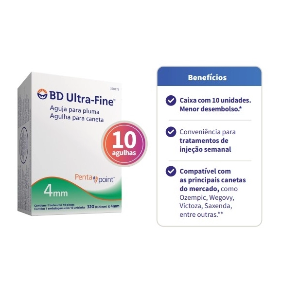 REPELENTE USO TOPICO>AGULHA BD P/CANETA U-FINE 4MM C/10